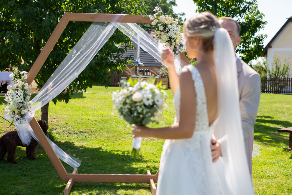Floristika, dekorace a celková atmosféra svatby v přírodním a romantickém stylu.