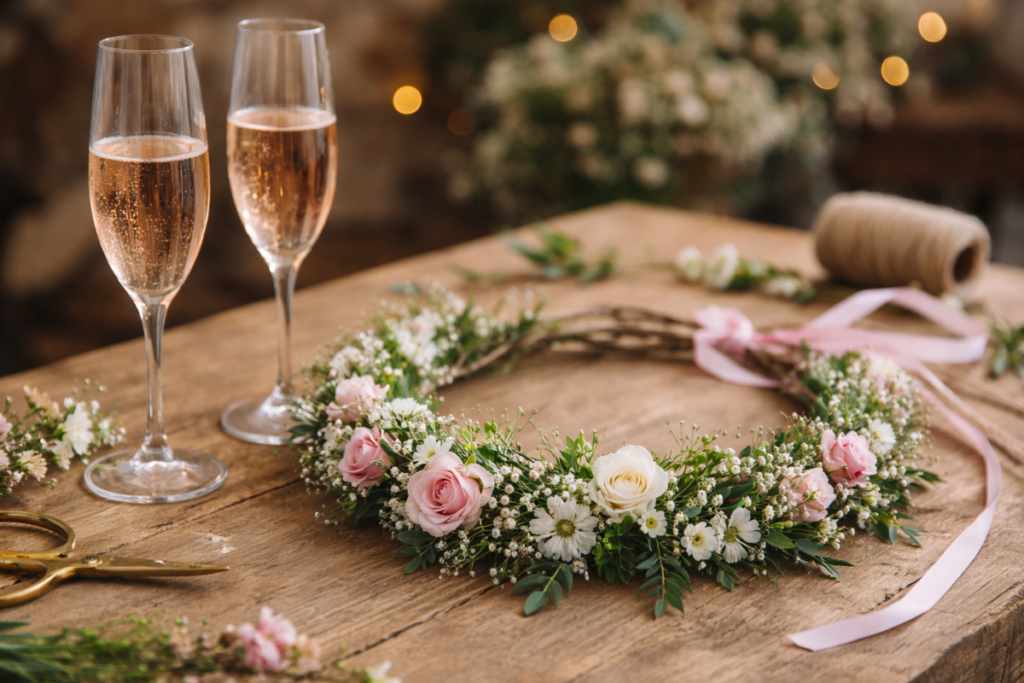 Společné tvoření věnečků s nevěstou, prosecco a drobné občerstvení – zážitek, na který se nezapomíná.