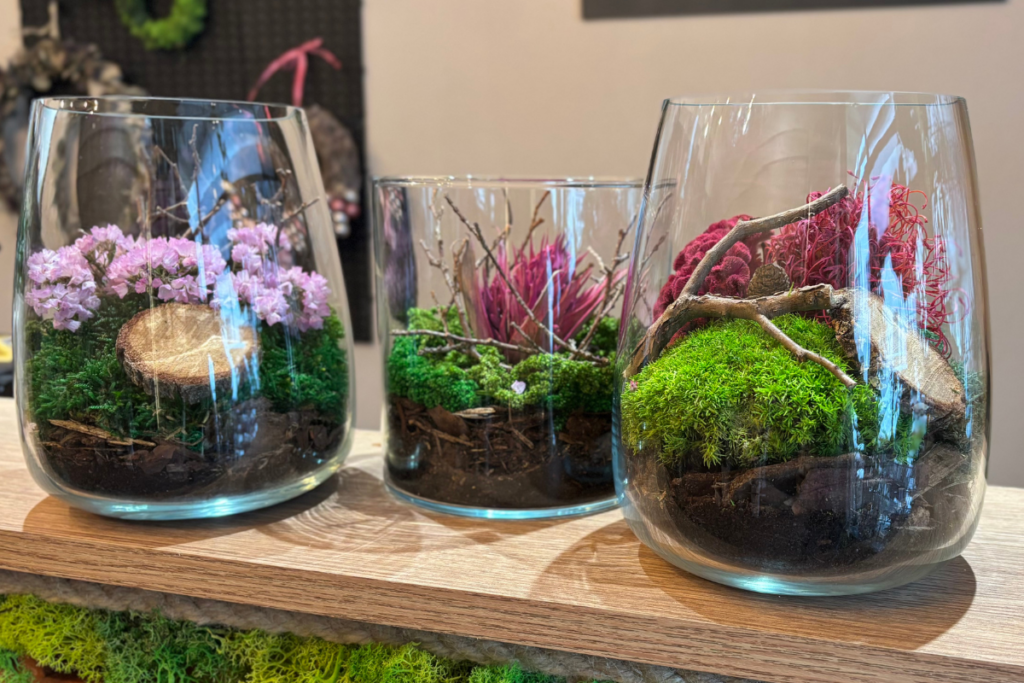 Kvítí ve skle je spojení sušených květin a stabilizovaného mechu, které vydrží krásné po dlouhou dobu bez zalévání či speciální péče. Je ideální do interiérů, kde chcete přírodní prvek, ale nemáte čas na pravidelnou údržbu.